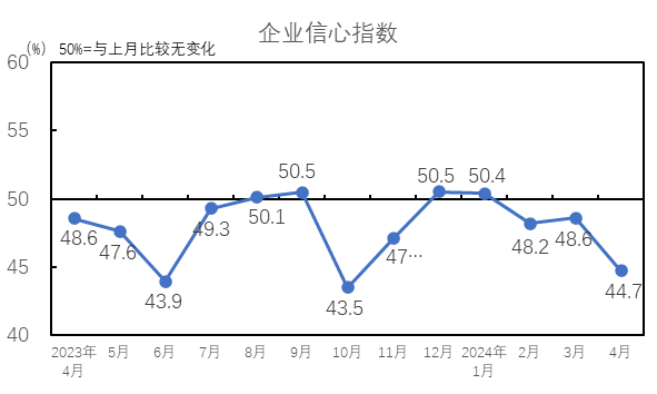 2024年4月,企業(yè)信心指數(shù)為44.7%,較3月下降3.9個百分點,企業(yè)信心指數(shù)低于臨界點,企業(yè)對于后市發(fā)展的信心不足。4月份市場淡季走勢明顯,下游需求逐步走弱,企業(yè)新增訂單量減少,疊加原料價格波動給企業(yè)帶來更高的成本壓力,企業(yè)普遍判斷后市市場將進一步走弱。