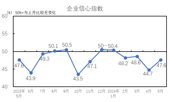 2024年5月,企業(yè)信心指數(shù)為47.6%,較4月上升2.9個(gè)百分點(diǎn),企業(yè)信心指數(shù)低于臨界點(diǎn),企業(yè)對(duì)于后市發(fā)展的信心不足。5月市場淡季行情逐步深入,下游需求保持弱勢,企業(yè)訂單多為剛需,持續(xù)性不佳,且銷售價(jià)格也不理想。企業(yè)普遍判斷短期內(nèi)市場淡季行情難有好轉(zhuǎn),對(duì)未來市場信心不足。
