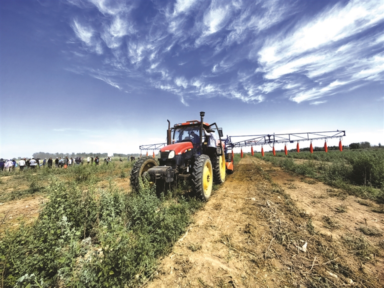 活動(dòng)現(xiàn)場集中演示智能吊桿式噴霧機(jī)、秸稈粉碎殘膜回收聯(lián)合作業(yè)機(jī)等田間作業(yè)設(shè)備。