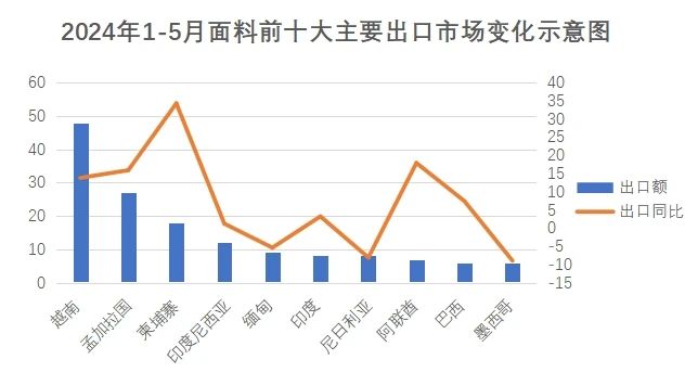 2024年1-5月面料出口增幅超過(guò)紡織服裝增幅