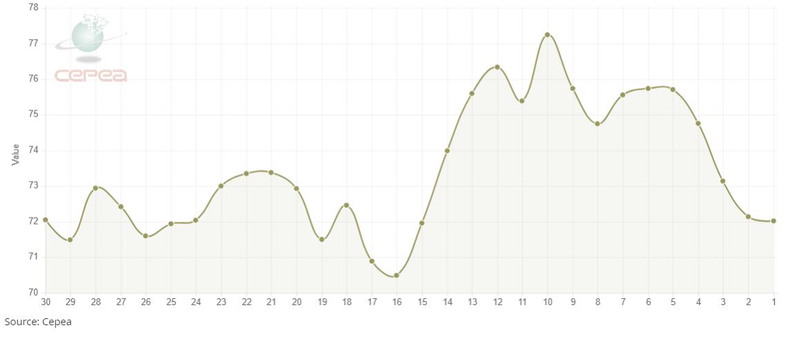 據(jù)外電7月22日消息,7月22日巴西CEPEA/ESALQ棉花價格指數(shù)報每磅72.02美分,較前一日下跌0.17%。