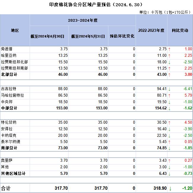 與此同時(shí),CAI預(yù)期2023/24年度印度棉花產(chǎn)量為3170萬包,持平于上個(gè)月,但低于前一年度的3189萬包。