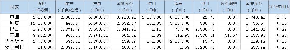以下為主要生產(chǎn)國棉花供需情況預估:
