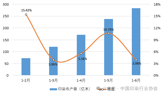 圖1 2024年上半年印染行業(yè)規(guī)模以上企業(yè)印染布產(chǎn)量及增速