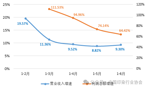 圖3 2024年上半年印染行業(yè)規(guī)模以上企業(yè)營(yíng)業(yè)收入和利潤(rùn)總額增速情況