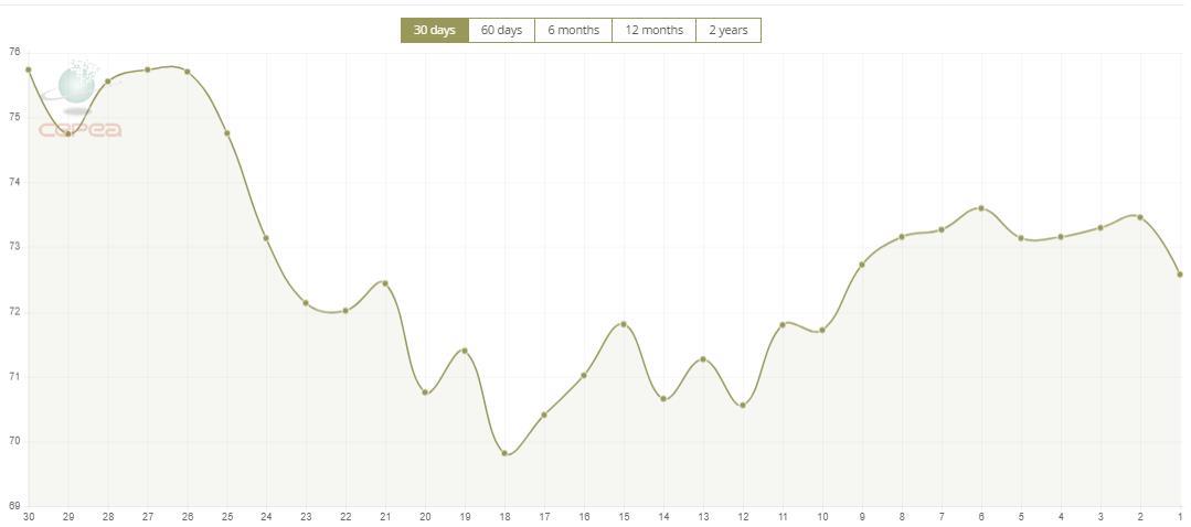 以下為近30日走勢(shì)圖:(單位:美分/磅)