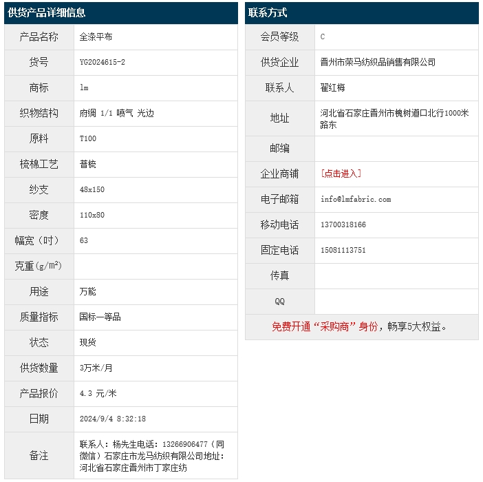 (來源:錦橋紡織網(wǎng),報價問題或委托采購請聯(lián)系0532-66886655)