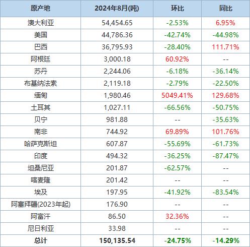 2024年1-8月我國進(jìn)口棉花約215萬噸,同比增長約149.8%。