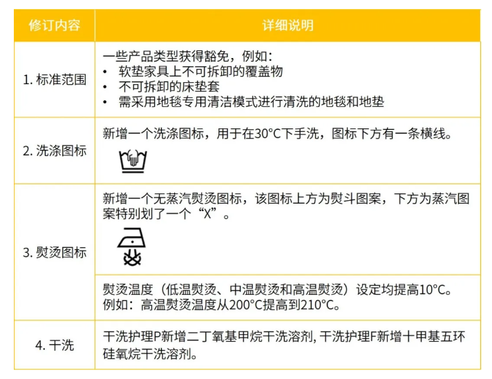 此最新版本旨在與ISO當(dāng)前的護理標(biāo)簽標(biāo)準(zhǔn)ISO3758:2023所規(guī)定的護理符號及一些護理處理方式保持一致。