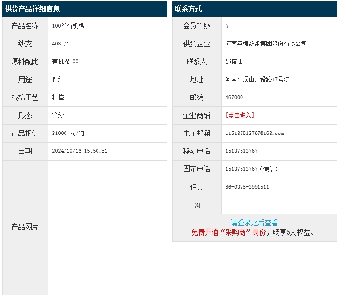 10月16日,河南平棉紡織集團(tuán)股份有限公司針織用精梳有機(jī)棉100 40S,報(bào)價(jià)為31000元/噸,實(shí)際成交價(jià)以協(xié)商為準(zhǔn)。[點(diǎn)擊查看詳情]