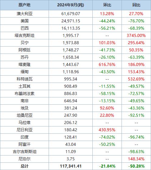 2024年1-9月我國進口棉花約227萬噸,同比增長約106.7%。