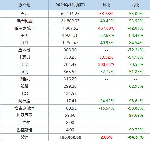 2024年1-11月我國進口棉花約248萬噸,同比增長約46.7%。