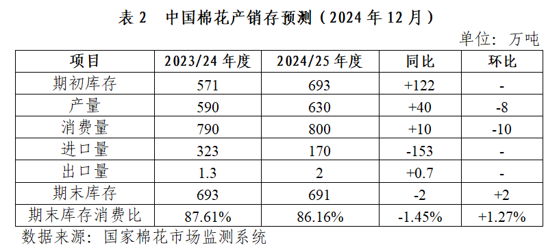 1.2024/25年度國內(nèi)棉花產(chǎn)需缺口收窄