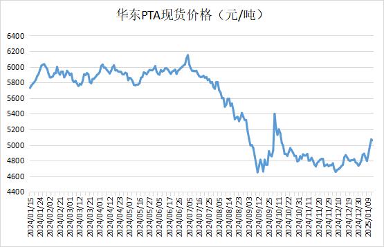早盤華東PTA價(jià)格偏強(qiáng)整理,現(xiàn)貨商談在5075元/噸附近,基差變化不大?,F(xiàn)貨主港交割報(bào)盤在05貼水90;2月商談在05貼水70,遞盤在05貼水80。商品整體表現(xiàn)偏強(qiáng),價(jià)格重心走強(qiáng),需求端支撐不足,實(shí)單買氣不佳。