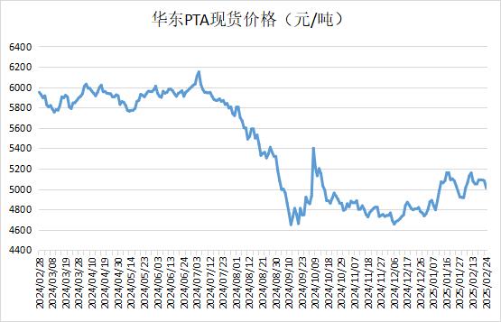 華東PTA現(xiàn)貨價(jià)格弱勢(shì)整理,商談參考5000元/噸附近。本周及下周主港交割報(bào)盤在05貼水60;3月初主港報(bào)盤在05貼水50,實(shí)單遞盤稀少。下游產(chǎn)銷平平,供需端缺乏指引,下游采購(gòu)積極性不佳,早盤市場(chǎng)買氣不足。