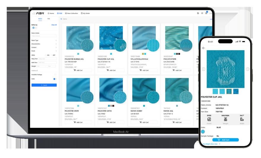 在快時(shí)尚與個(gè)性化需求井噴的時(shí)代,“找布難”仍是懸在品牌和設(shè)計(jì)師頭頂?shù)碾y題。如何讓設(shè)計(jì)師們擺脫跨越山海、翻閱成堆樣本冊(cè)等低效的搜尋模式,更好地專注于創(chuàng)意與設(shè)計(jì)?同行智慧科技給出了答案--FABVIZION織物智能搜索終端設(shè)備及與之匹配的“智能物料搜索及揀選系統(tǒng)”。這一“王牌搭配”結(jié)合大數(shù)據(jù)、AI算法與智能硬件,能夠?qū)崿F(xiàn)面輔料的實(shí)時(shí)在線搜索與下單。設(shè)計(jì)師們只需輕點(diǎn)屏幕,便能在數(shù)秒內(nèi)從數(shù)百萬(wàn)級(jí)的樣本庫(kù)中找到心儀的物料,真正實(shí)現(xiàn)“隨時(shí)隨地”搜尋。
