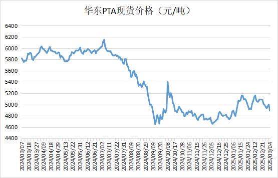 華東PTA現(xiàn)貨偏弱整理,商談參考4870元/噸附近。下周主港交割報盤在05貼水20元/噸,個單遞盤在05貼水30元/噸;3月下主港商談在05貼水20-30元/噸。國際油價持續(xù)走弱,市場缺乏利好驅(qū)動,早盤市場買盤略顯謹慎,實單商談稀少。
