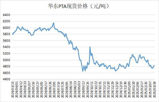 華東PTA現(xiàn)貨僵持整理,商談參考4830元/噸附近。本周及下周主港交割報(bào)盤在05平水,遞盤在10元/噸;4月初主港報(bào)盤在05升水10元/噸,無實(shí)單遞盤。外圍不穩(wěn)定因素較多,商品整體走勢轉(zhuǎn)弱,下游采購積極性不高,需求端缺乏持續(xù)性驅(qū)動。