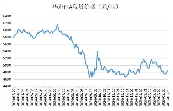 華東PTA現(xiàn)貨弱勢(shì)整理,商談參考4820元/噸附近。本周及下周主港交割報(bào)盤在05貼水5元/噸,遞盤在15元/噸;4月初主港報(bào)盤在05升水15元/噸,無(wú)實(shí)單遞盤。市場(chǎng)缺乏利好驅(qū)動(dòng),下游多剛需采購(gòu)為主,早盤實(shí)單商談清淡。