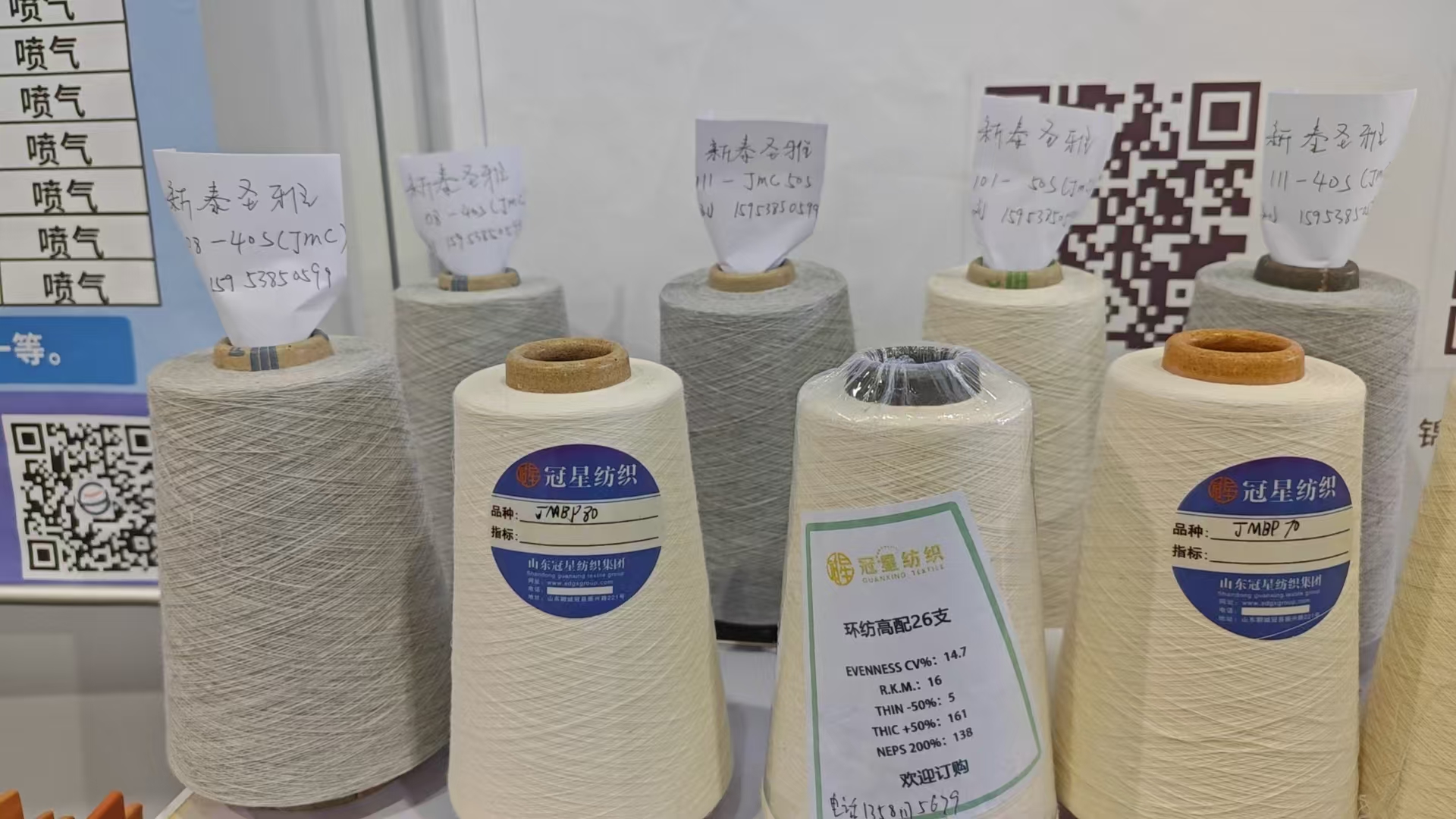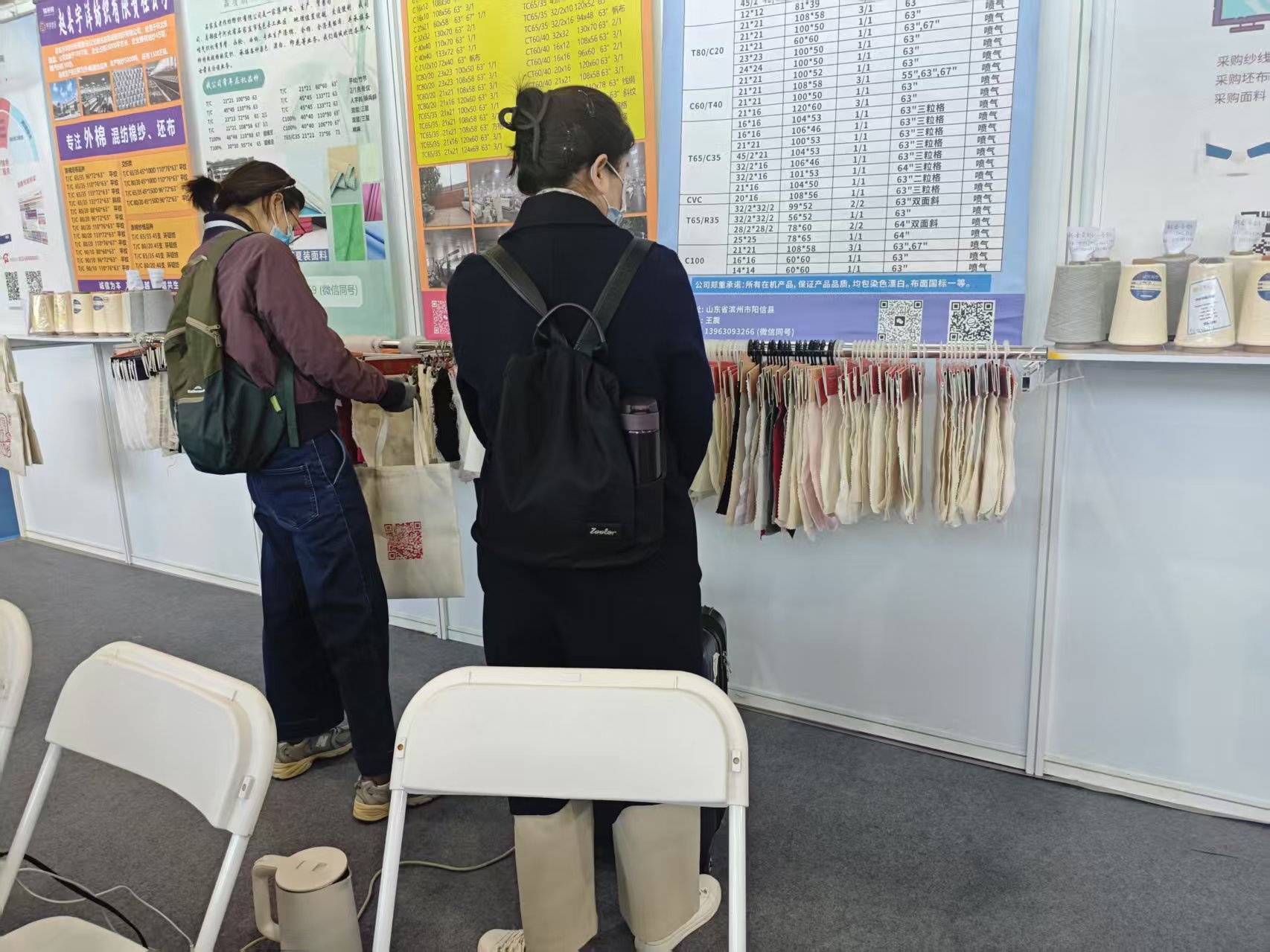 此次展會(huì)采購(gòu)商到展參觀較多,到展采購(gòu)截止目前紗線以針織紗、高支紗、混紡、毛類紗為主,布料以三粒格、雙層紗布、重磅劍桿厚重帆布、床品、防靜電后整理布為主。