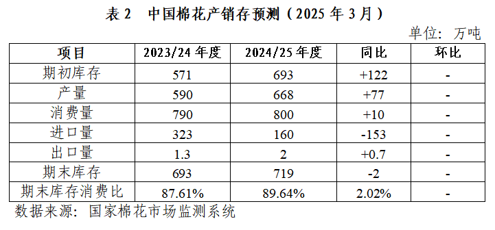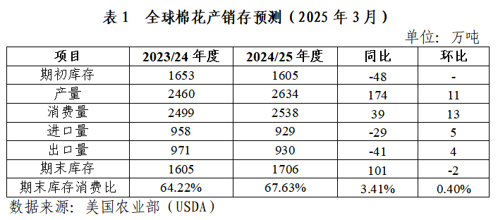 1.2024/25年度全球棉花產(chǎn)需仍趨寬松