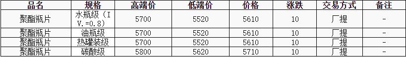華東聚酯瓶片價(jià)格上漲10元至5610元/噸,原料偏強(qiáng)震蕩,聚酯瓶片工廠多穩(wěn)定,市場(chǎng)重心略有上揚(yáng)。4月貨源報(bào)盤5520-5700元/噸,局部略高5830元/噸或期貨合約2506平水至升水150元/噸,遞盤5500-5520元/噸或2506合約貼水30元/噸。