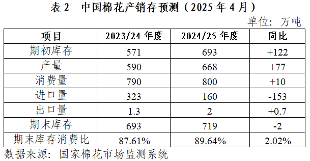 1.2024/25年度全球棉花產(chǎn)需格局進一步寬松