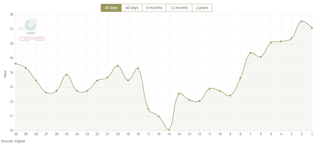 以下為近30日走勢圖:(單位:美分/磅)