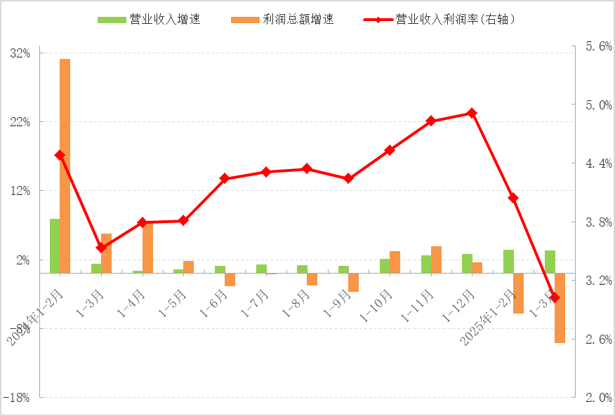 圖5 2025年1-3月服裝行業(yè)主要效益指標(biāo)情況