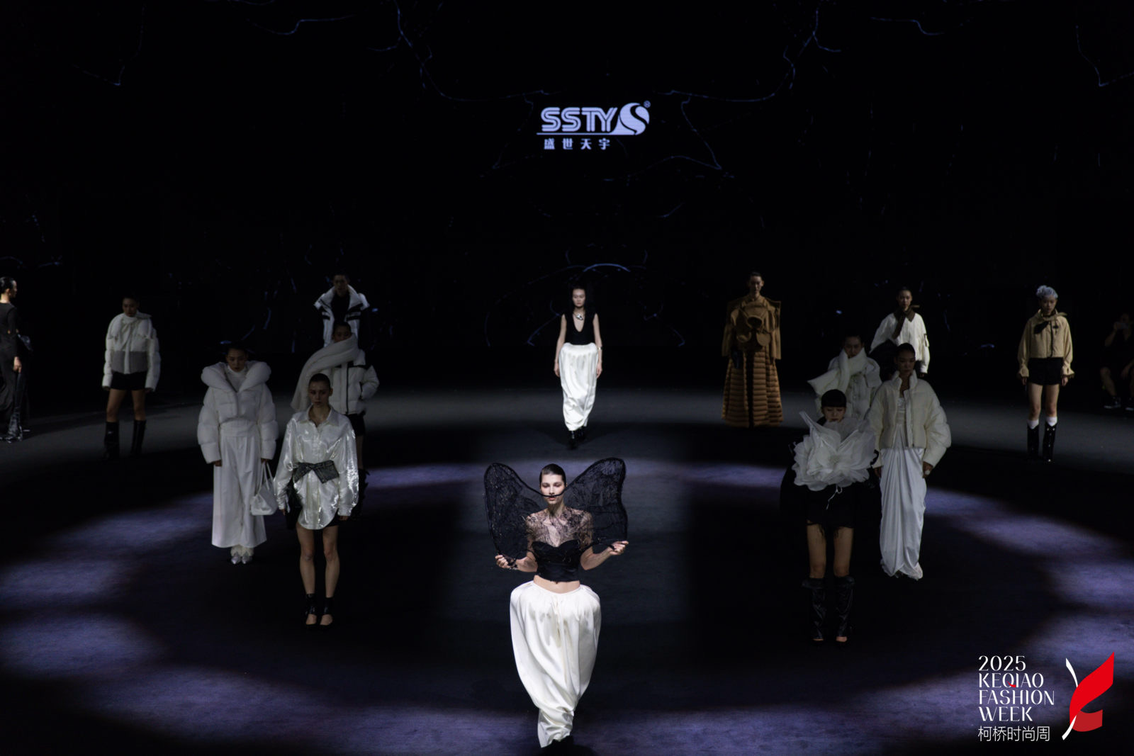 5月6日,柯橋時(shí)裝周期間,當(dāng)秀場穹頂傾瀉出流光,T臺(tái)中央仿若蝶蛹裂開第一道縫隙,以羽絨為絲、科技為繭,在萬眾矚目的柯橋時(shí)尚周上,盛世天宇織就一場「蝶與花」的時(shí)尚生命史詩。十五年防寒面料基因在此刻羽化,中國智造的風(fēng)暴正漫過世界衣脈。