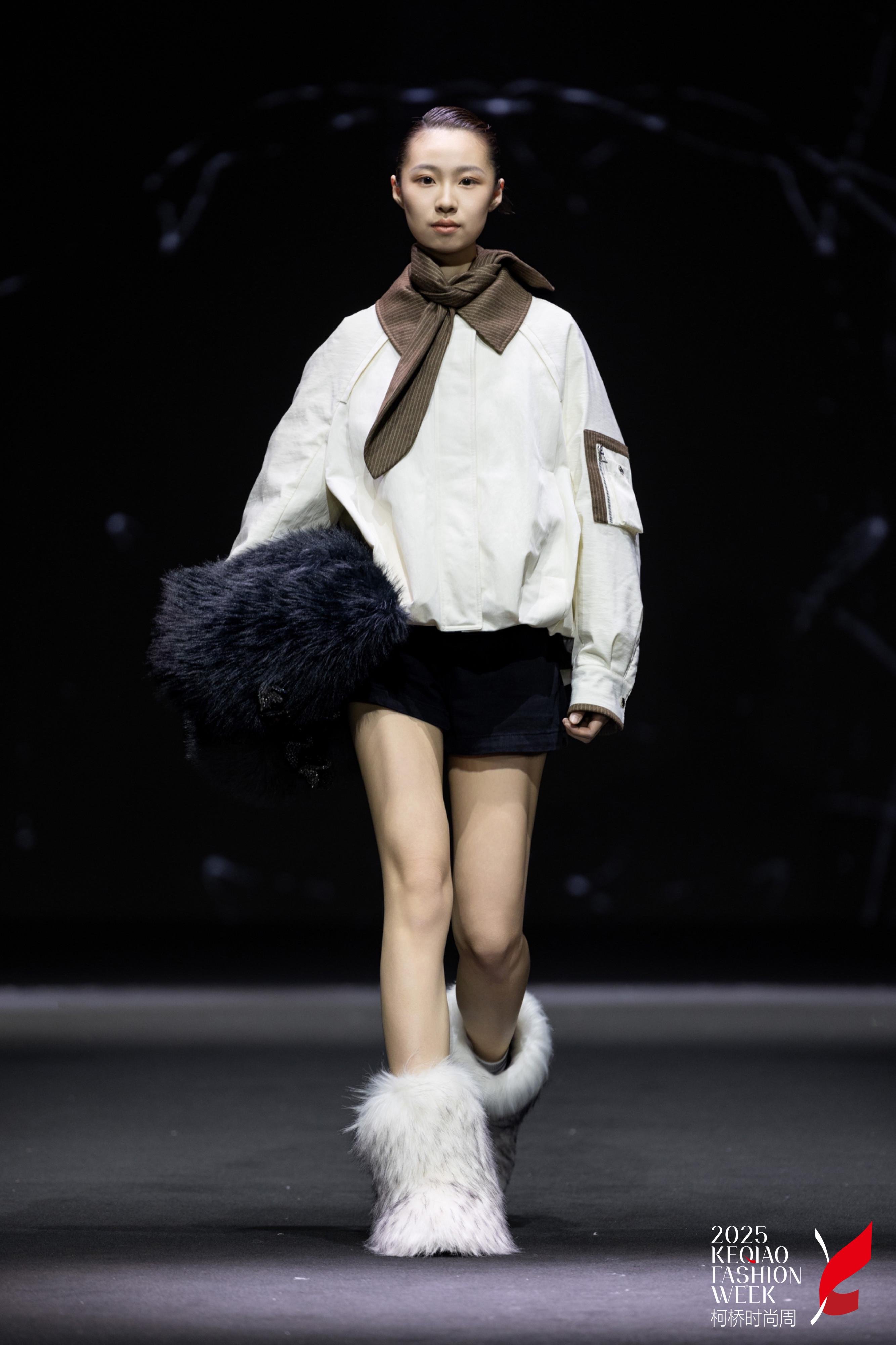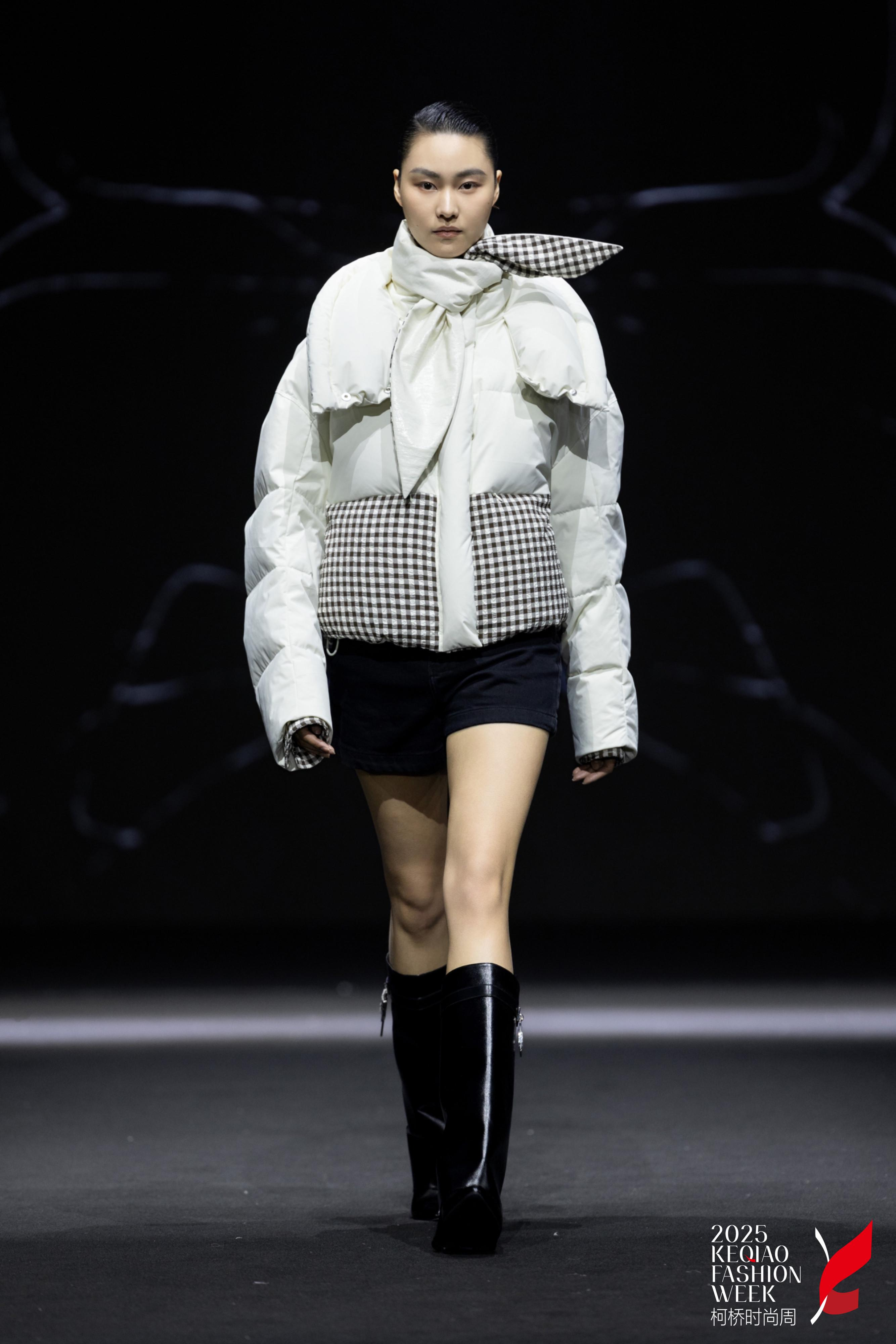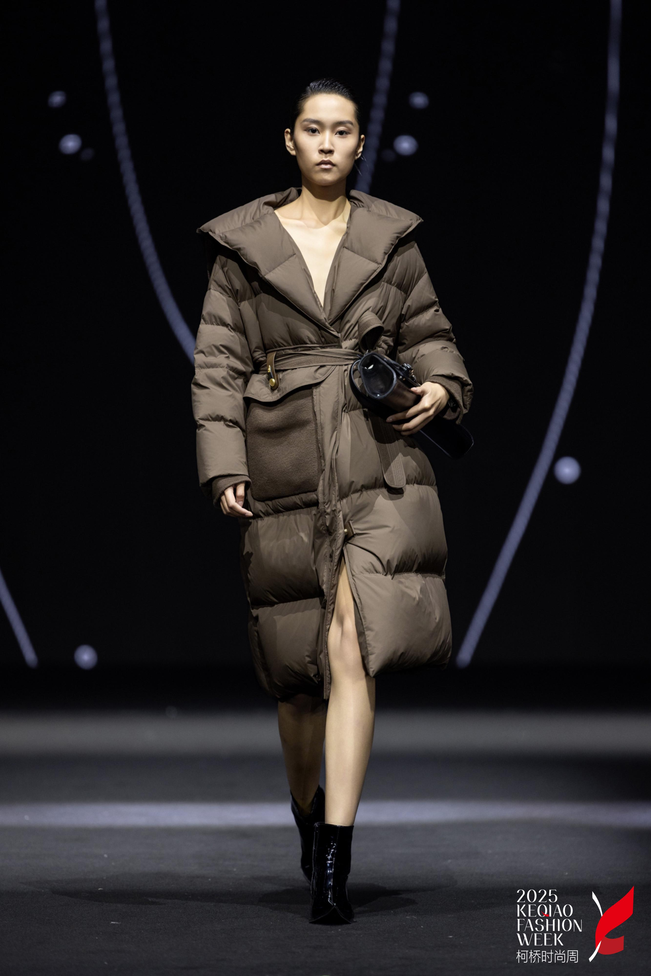 本季以“蝶蛹初生—羽化蛻變—生命綻放”為敘事脈絡(luò),將自然界的蝶變哲學(xué)與羽絨服功能性、藝術(shù)性融合。通過仿生蕾絲蝴蝶造型、雙面呢花卉拼接、羊毛與羽絨材質(zhì)碰撞,結(jié)合運(yùn)河滑雪運(yùn)動(dòng)基因、職場套裝與膨脹式戲劇化廓形,打造兼具浪漫詩意與未來科技感的冬日美學(xué)。