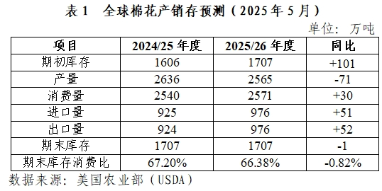 1.2025/26年度全球棉花產(chǎn)需基本平衡