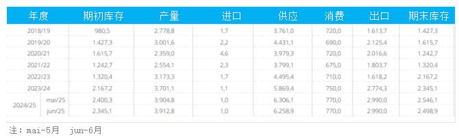 6月12日(周四),巴西國家商品供應(yīng)公司Conab表示,2024/25年度巴西棉花產(chǎn)量預(yù)估為390.48萬噸,同比增加5.5%,2023/24年度為370.13萬噸。
