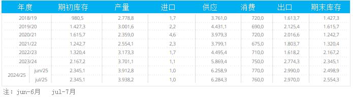 7月10日(周四),巴西國(guó)家商品供應(yīng)公司Conab表示,2024/25年度巴西棉花產(chǎn)量預(yù)估為393.82萬噸,同比增加6.4%,2023/24年度為370.11萬噸。