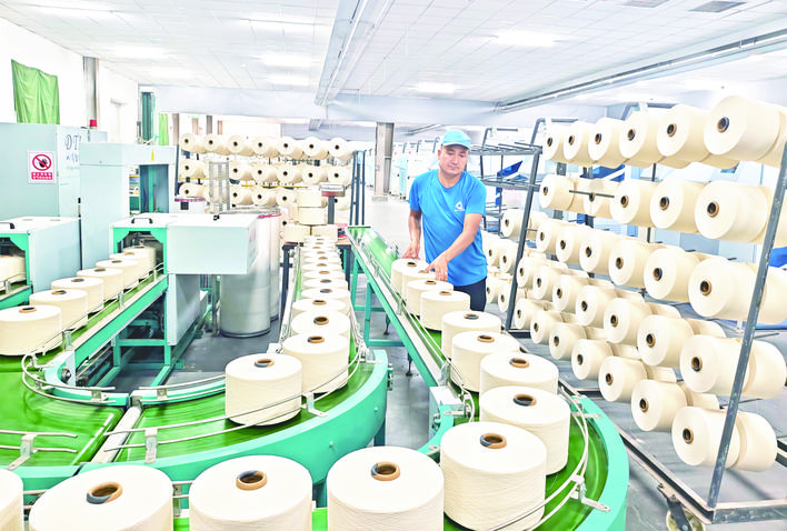 7月16日,新疆精一紡織科技有限責(zé)任公司的工人在紡織車間作業(yè)。該公司位于阿瓦提縣阿瓦提鎮(zhèn),連日來,公司開足馬力生產(chǎn),確保產(chǎn)品按時供應(yīng)市場。