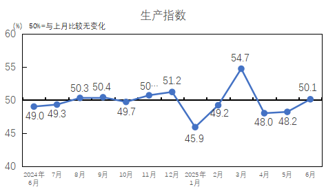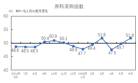 中國制造業(yè)采購經(jīng)理指數(shù)繼續(xù)回升。國家統(tǒng)計局服務(wù)業(yè)調(diào)查中心和中國物流與采購聯(lián)合會發(fā)布的2025年6月中國制造業(yè)采購經(jīng)理指數(shù)為49.7%,較上月上升0.2個百分點,制造業(yè)景氣面有所擴大。