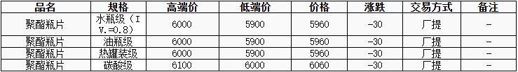 華東聚酯瓶片價格下跌30元至5960元/噸,原油及原料大幅下跌,聚酯瓶片工廠報價多下調50-100元/噸,重心隨之下行。8月貨源報盤5900-6000元/噸或期貨合約2509貼水30元/噸至升水40元/噸,遞盤5890-5990元/噸,下游及貿(mào)易商逢低補貨。