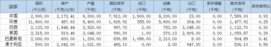 以下為主要生產(chǎn)國(guó)棉花供需情況預(yù)估: