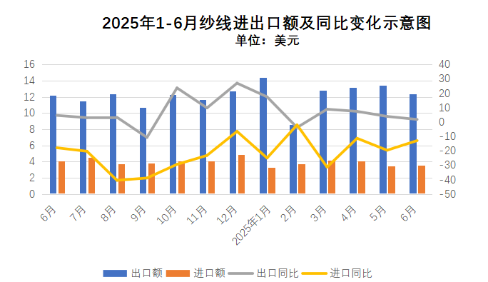 今年以來,國(guó)際環(huán)境呈復(fù)雜多變態(tài)勢(shì),國(guó)際經(jīng)貿(mào)秩序遭受嚴(yán)重沖擊,不穩(wěn)定性與不確定性顯著上升,2季度受美國(guó)關(guān)稅政策影響,出口一度出現(xiàn)波動(dòng)。在此復(fù)雜局面下,1-6月紗線面料出口在重重壓力下實(shí)現(xiàn)增長(zhǎng),發(fā)展韌性得到進(jìn)一步鞏固和釋放。