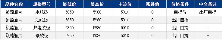 華東聚酯瓶片收于5910元/噸,漲跌值持穩(wěn),成本走高,然而今日成交冷清,聚酯瓶片工廠報價多穩(wěn),重心持穩(wěn)為主。8-9月貨源報盤5890-6000元/噸或期貨合約2509-20至90元/噸;遞盤5850-5960元/噸,下游及貿(mào)易商剛需補貨。