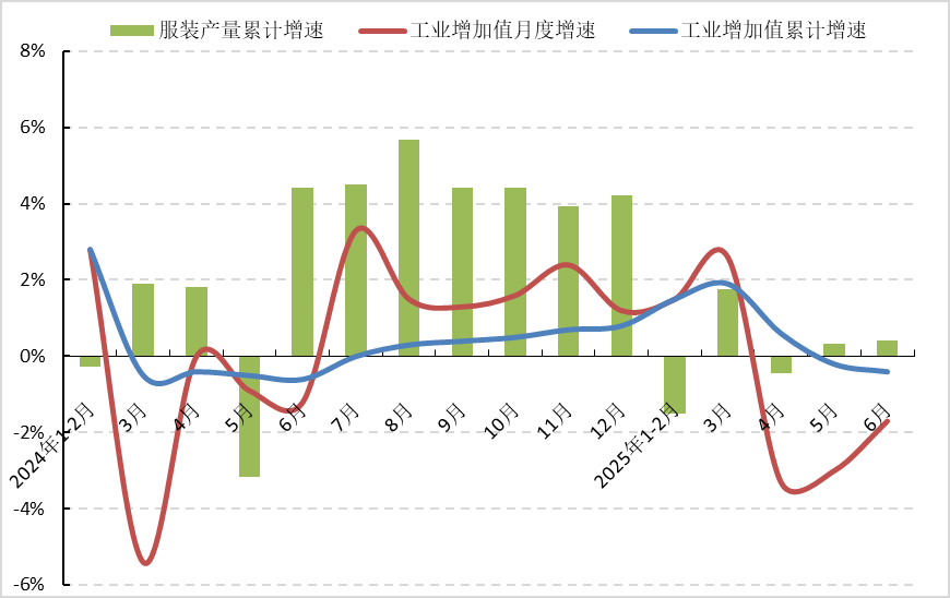 圖1 2025年1-6月服裝行業(yè)生產(chǎn)增速情況