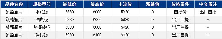 華東聚酯瓶片收于5920元/噸,價格持穩(wěn),聚酯瓶片工廠報盤多穩(wěn),部分漲30元/噸,今日成本端PX海外供應緊張支撐聚酯成本走勢,然而下游追漲乏力,成交重心偏暖震蕩。8-10月貨源報盤5880-6000元/噸;遞盤5880-5960元/噸,成交欠佳。