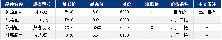 華東聚酯瓶片收于6000元/噸,漲跌值0元/噸,成本堅(jiān)挺運(yùn)行,下游及貿(mào)易昨多已備貨,今詢盤氣氛明顯回落,成交重心趨穩(wěn)。目前8-10月貨源報(bào)盤區(qū)間為5960-6090元/噸,遞盤區(qū)間5940-6030元/噸。