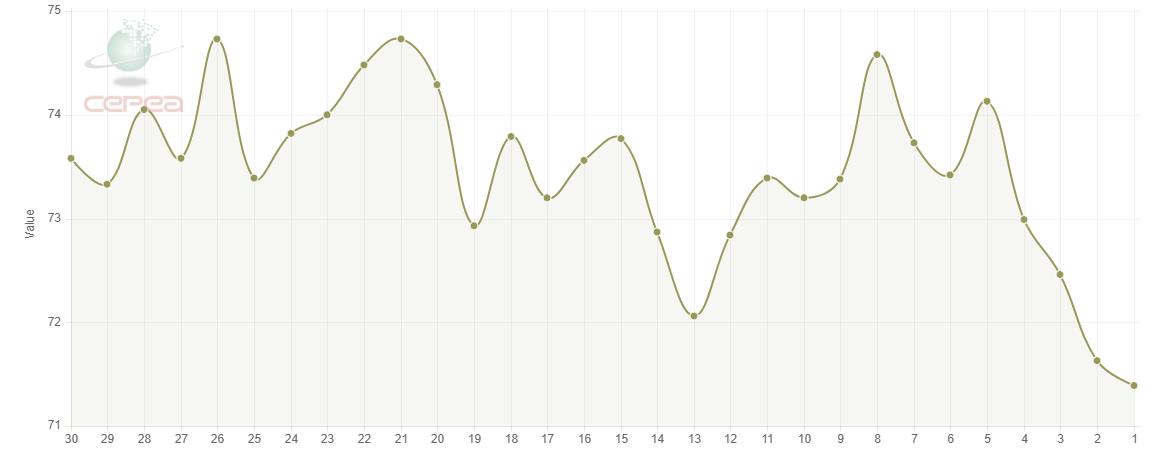 8月21日(周四),巴西CEPEA/ESALQ棉花價格指數(shù)報71.39美分/磅,較前一交易日下跌0.34%,較上月同期下跌2.95%。