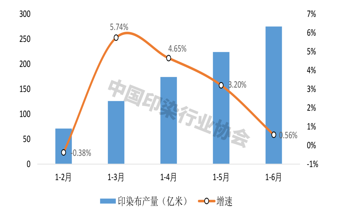 圖1 2025上半年我國印染行業(yè)規(guī)模以上企業(yè)印染布產(chǎn)量及增速