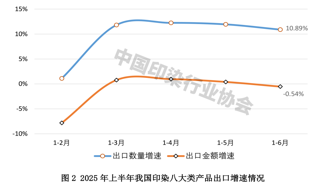 2025年以來,國際環(huán)境復(fù)雜多變,美國“對(duì)等關(guān)稅”政策沖擊國際貿(mào)易規(guī)則,全球經(jīng)貿(mào)格局加快重塑,我國紡織品服裝出口受到影響。在政策支持下內(nèi)需消費(fèi)市場(chǎng)活力逐步釋放,但消費(fèi)環(huán)境和居民消費(fèi)意愿仍有待進(jìn)一步改善和提升。面對(duì)復(fù)雜嚴(yán)峻的局面,我國印染行業(yè)頂住壓力,上半年生產(chǎn)形勢(shì)保持總體平穩(wěn),印染布產(chǎn)量實(shí)現(xiàn)小幅增長(zhǎng),主要產(chǎn)品出口數(shù)量延續(xù)增長(zhǎng)態(tài)勢(shì),外貿(mào)韌性進(jìn)一步凸顯。但也要看到,當(dāng)前市場(chǎng)競(jìng)爭(zhēng)進(jìn)一步加劇,印染面料出口單價(jià)明顯下滑,行業(yè)發(fā)展質(zhì)效顯著承壓,下半年平穩(wěn)發(fā)展仍面臨諸多問題和挑戰(zhàn)。