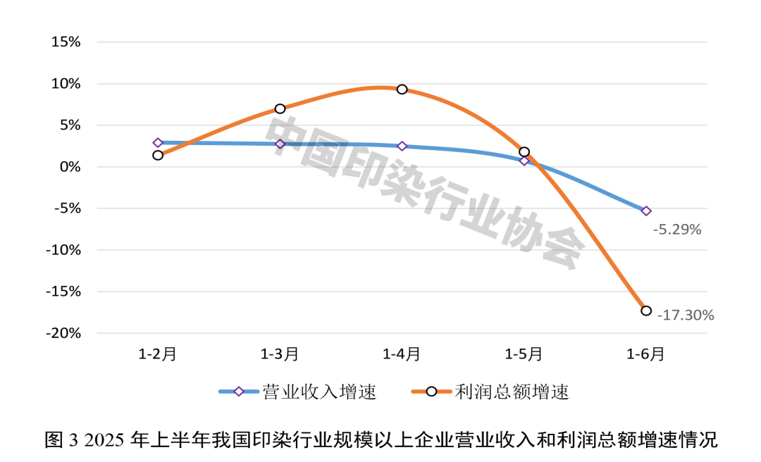 上半年,規(guī)模以上印染企業(yè)營業(yè)收入同比減少5.29%,增速較1季度放緩8.05個(gè)百分點(diǎn);利潤(rùn)總額同比大幅減少17.30%,增速較1季度放緩24.28個(gè)百分點(diǎn);成本費(fèi)用利潤(rùn)率3.78%,同比降低0.57個(gè)百分點(diǎn);營業(yè)收入利潤(rùn)率3.55%,同比降低0.51個(gè)百分點(diǎn)。1846家規(guī)模以上印染企業(yè)虧損戶數(shù)為730戶,虧損面39.54%,同比擴(kuò)大2.91個(gè)百分點(diǎn);虧損企業(yè)虧損總額19.23億元,同比減少7.39%。2季度,印染行業(yè)主要經(jīng)濟(jì)效益指標(biāo)增速均由正轉(zhuǎn)負(fù),尤其是6月份,營業(yè)收入和利潤(rùn)總額增速加速下滑,印染企業(yè)經(jīng)營壓力明顯加大。