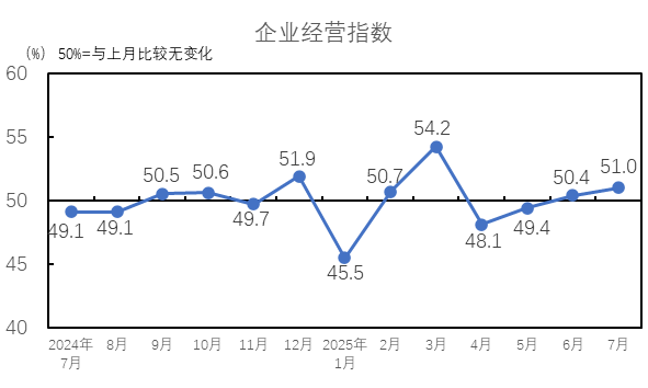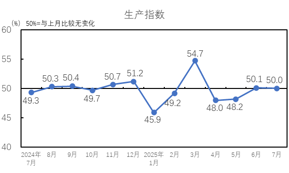中國制造業(yè)采購經(jīng)理指數(shù)有所回落。國家統(tǒng)計局服務(wù)業(yè)調(diào)查中心和中國物流與采購聯(lián)合會發(fā)布的2025年7月中國制造業(yè)采購經(jīng)理指數(shù)為49.3%,較上月下降0.4個百分點(diǎn)。7月,受制造業(yè)進(jìn)入傳統(tǒng)生產(chǎn)淡季,部分地區(qū)高溫、暴雨洪澇災(zāi)害等因素影響,制造業(yè)景氣水平較上月回落。