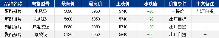 華東聚酯瓶片收于5740元/噸,漲跌值-20元/噸,成本偏弱震蕩,聚酯瓶片工廠報價多穩(wěn)定或下調(diào)10-30元/噸,重心隨之下行。9-11月貨源報盤5700-5950元/噸,9-11月合約報盤2511升水0-20元/噸,較高2511升水60-70元/噸;詢盤5700-5880元/噸,9-11月合約遞盤2511貼水0-70元/噸,較高升水30-80元/噸。