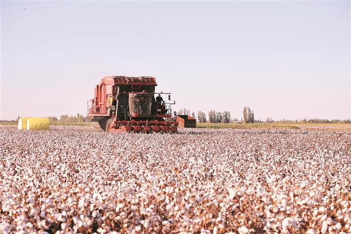 10月8日,六師新湖農(nóng)場的一片棉田里,采棉機(jī)在采收新棉。目前,新湖農(nóng)場65萬畝棉花開始全面采收,該場積極協(xié)調(diào)采棉機(jī)、運(yùn)輸車,全力做好棉花采收工作,確保朵絮歸倉。作為國家優(yōu)質(zhì)棉花生產(chǎn)基地,近年來,新湖農(nóng)場在品種選擇、田間管理、加工設(shè)備升級等方面下足功夫,同時(shí)持續(xù)健全質(zhì)量追溯體系,著力提升品級質(zhì)量,促進(jìn)棉花產(chǎn)業(yè)提質(zhì)增效,帶動職工群眾持續(xù)增收。